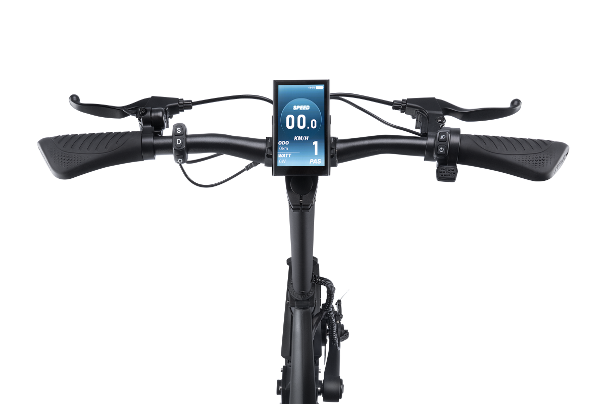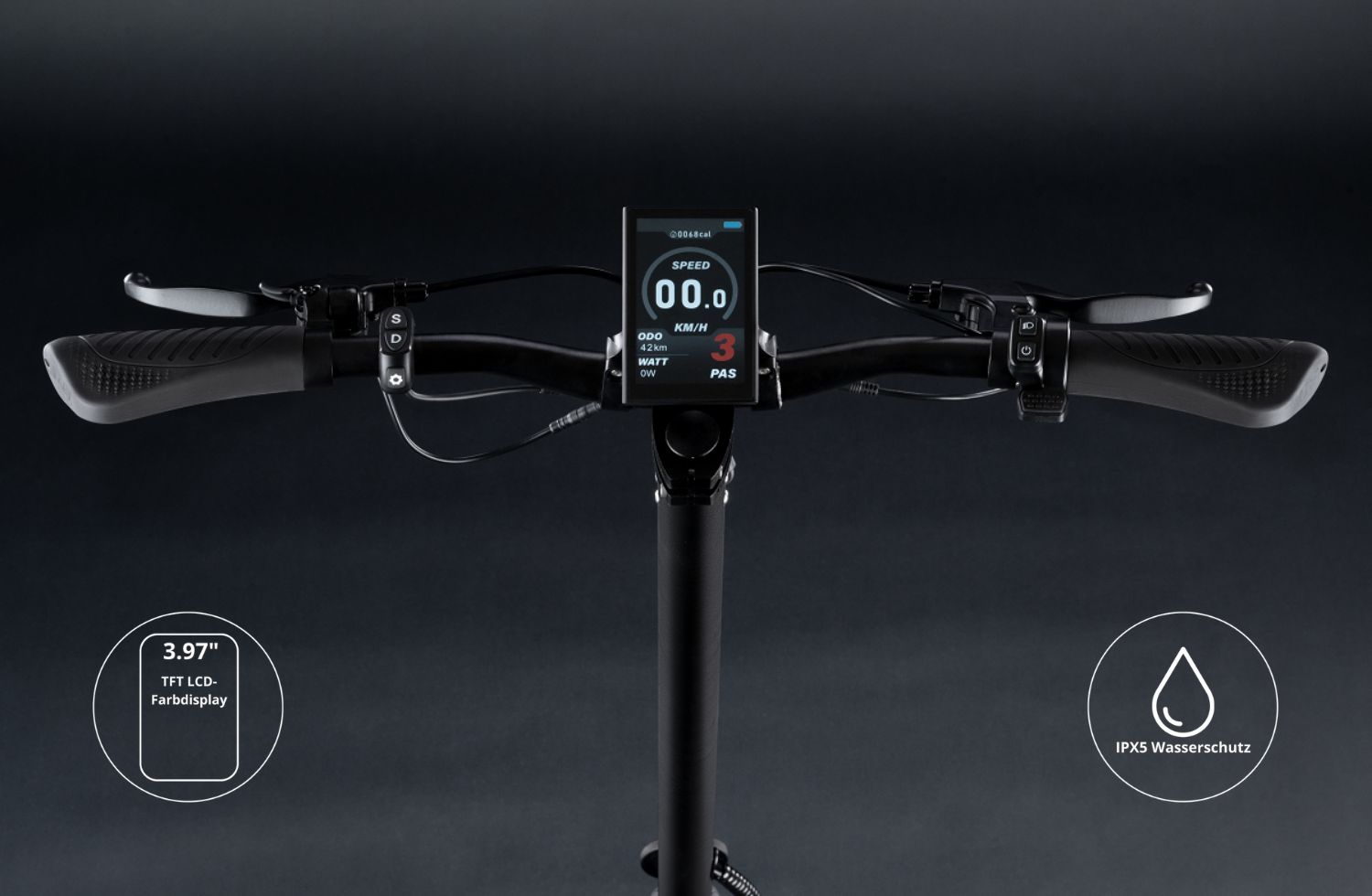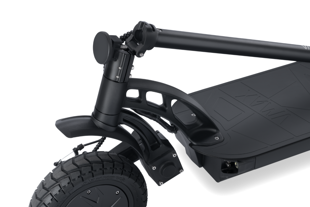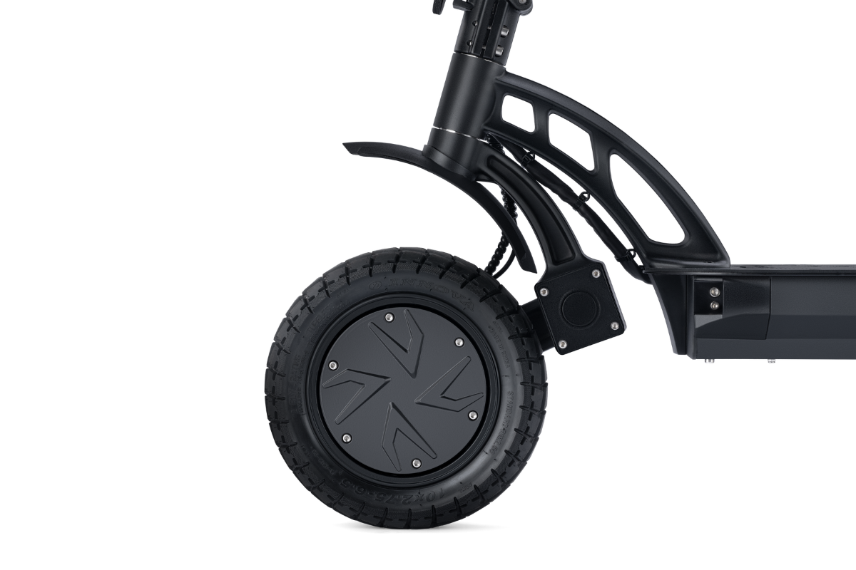 Ein breites Trittbrett mit Fussstütze, ein 4" TFT-Farbdisplay und ergonomische Griffe sorgen für ein komfortables Fahrerlebnis. Die breite Lenkereinheit und das rutschfeste Deck bieten Ihnen sichere Kontrolle, auch in schwierigem Gelände. Die 10" Offroad-Tubeless-Reifen sorgen für Stabilität und Grip.